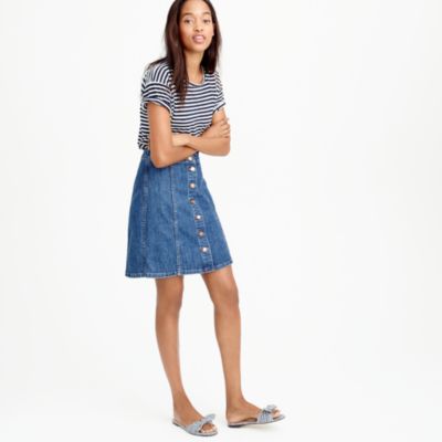 Button-Front Denim Skirt :這件前面有釦子的牛仔裙好看,夠復古。A字裙很能修飾身材。