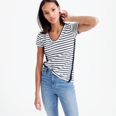 Striped V-Neck Top with Pom-Pom: 這件一上架我就喜歡,經典條紋配上Pom Pom的細節,超級顯瘦的。不過根據評價說最好拿大一號,有人說洗烘完會縮水。不然就是用洗衣機洗,之後晾乾。